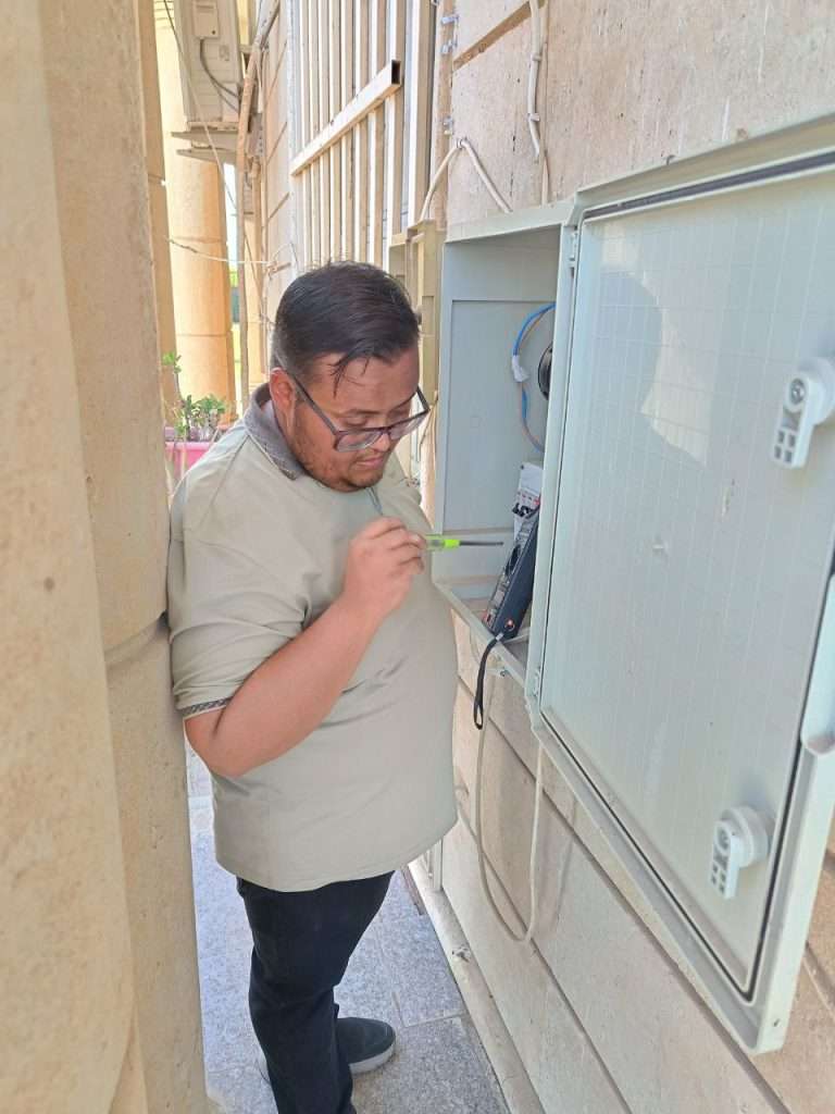 كلية العلوم الإسلامية تنفذ حملة لصيانة الإضاءة الخارجية بإشراف معاون العميد الإداري