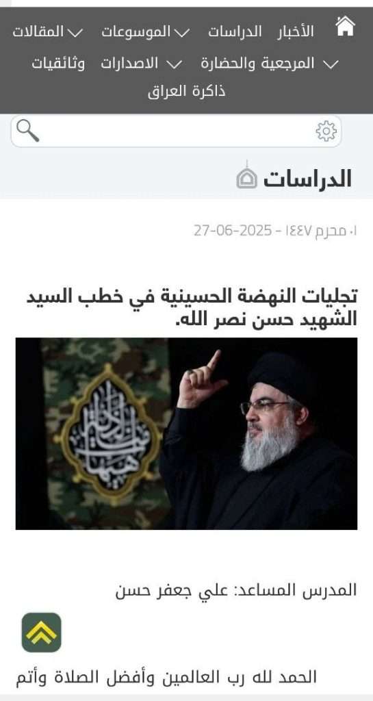 واختتم المقال بالتأكيد على أن النهضة الحسينية ليست حدثًا تاريخيا محدودا، بل مشروع إنساني متجدد، يسكن الوجدان ويصنع التغيير، وأن السيد نصر الله إنما يمثل صوت كربلاء في هذا الزمن، وامتدادا لصرخة الإمام الحسين (عليه السلام) في وجه الظلم والانحراف.