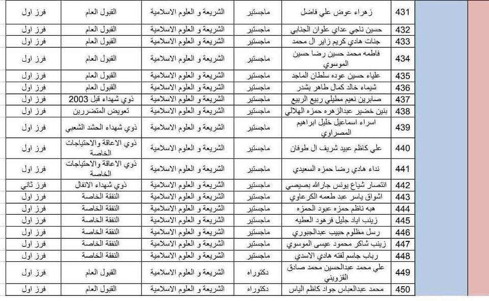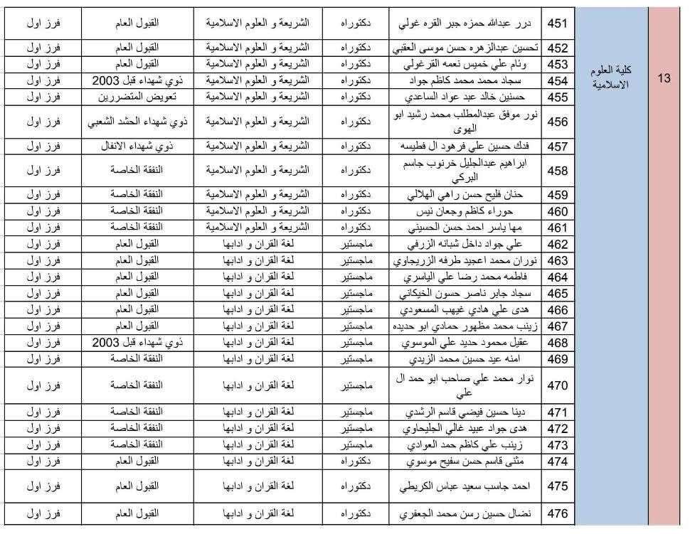 تعلن كلية العلوم الاسلامية في جامعة كربلاء القبول النهائي في الدراسات العليا للعام الدراسي 2025-2026 و لكافة الاقسام العلمية ( ماجستير ،دكتوراه )