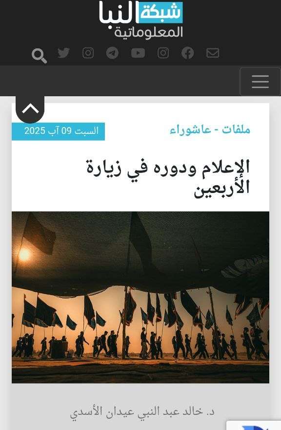 نشر التدريسيي في كلية العلوم الإسلامية بجامعة كربلاء الاستاذ المساعد الدكتور خالد عبد النبي مقالًا بحثيا مهما على شبكة النبأ المعلوماتية تناول فيه الدور المحوري للإعلام في تسليط الضوء على زيارة الأربعين، مبرزا الأبعاد الثقافية والدينية والإنسانية التي تنطوي عليها هذه المناسبة العظيمة، والدور المنوط بالإعلام الحسيني في إيصالها إلى العالم بأسره.