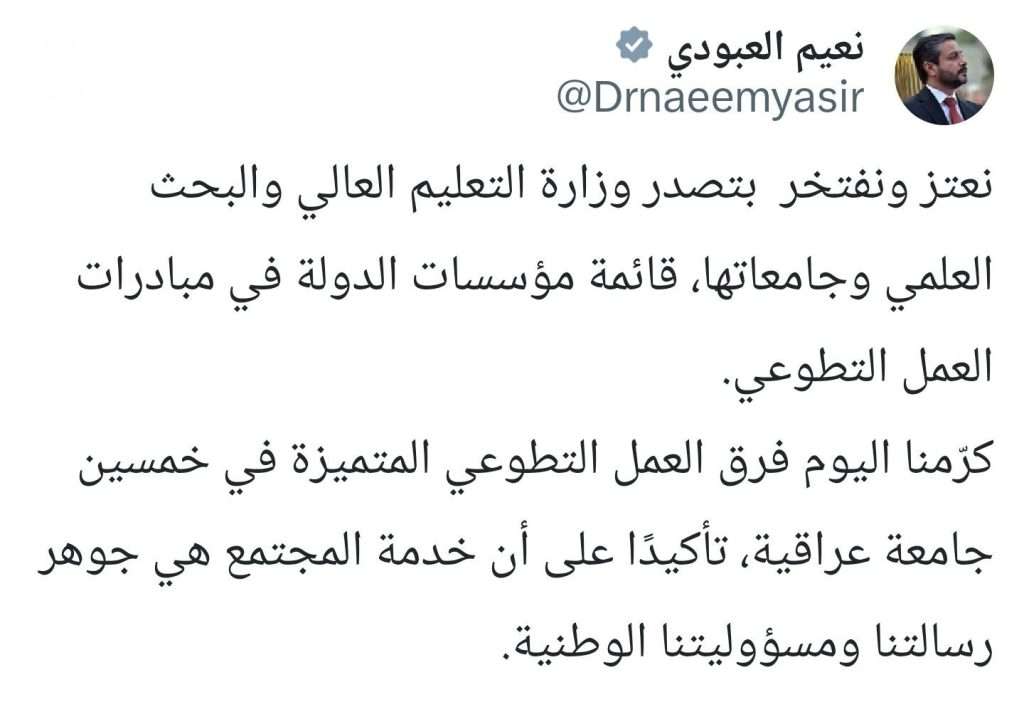 وزير التعليم العالي والبحث العلمي الدكتور نعيم العبودي ….