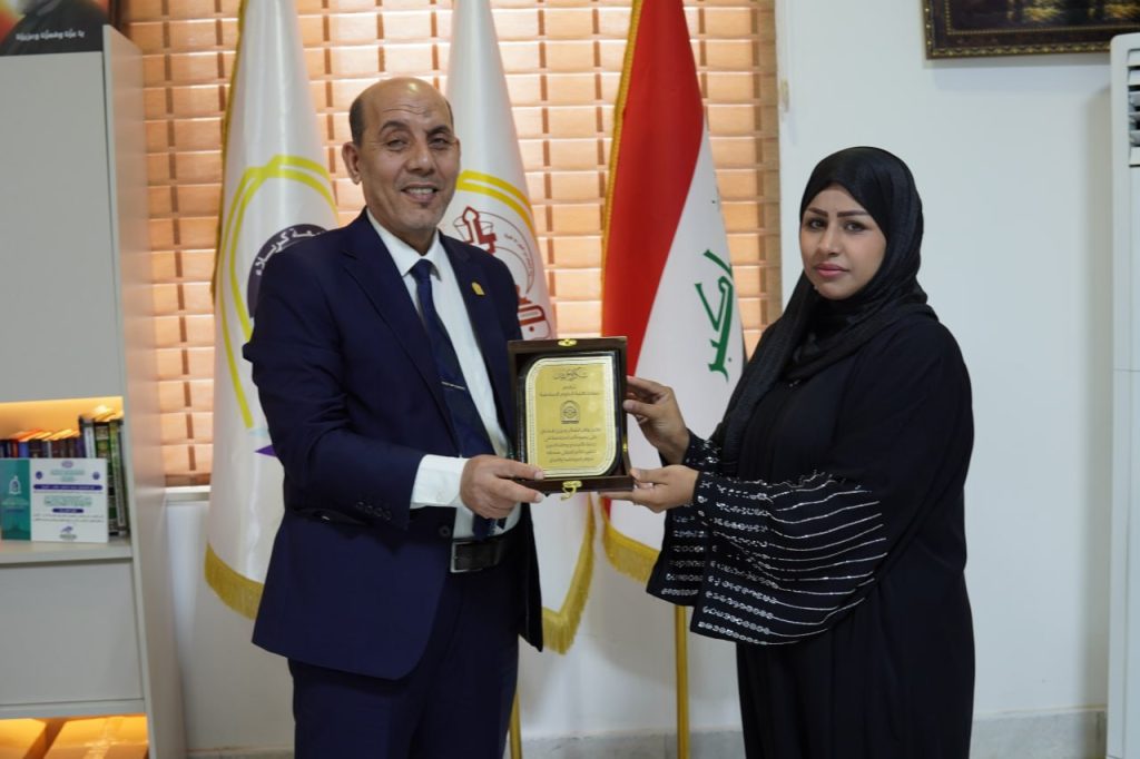 كرّم الأستاذ الدكتور محمد حسين عبود الطائي، عميد كلية العلوم الإسلامية، الطالبة أمل هاني من قسم اللغة العربية / المرحلة الثالثة، وذلك بدرع خاص تقديراً لتميزها وتفانيها في الأعمال التطوعية والمبادرات الخدمية التي شاركت بها داخل الكلية وخارجها.